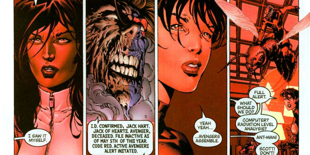 A love story runs through the line following She-Hulk and Jack-of-Hearts, a character I had never heard of. I’m not a comic book expert, but I was a diehard player of Heroclix in the game’s first years (twenty years ago) and I don’t remember any Jack-of-Hearts.